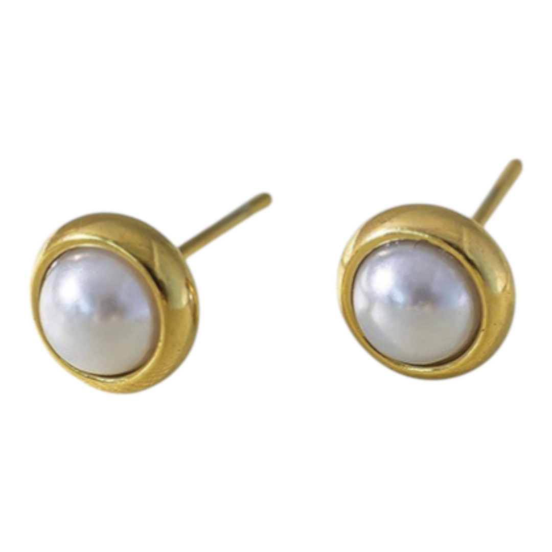 Arete Perla Mini con diseño delicado y elegante, presenta una perla blanca enmarcada en un fino borde dorado. Ideal para un look sutil y sofisticado.