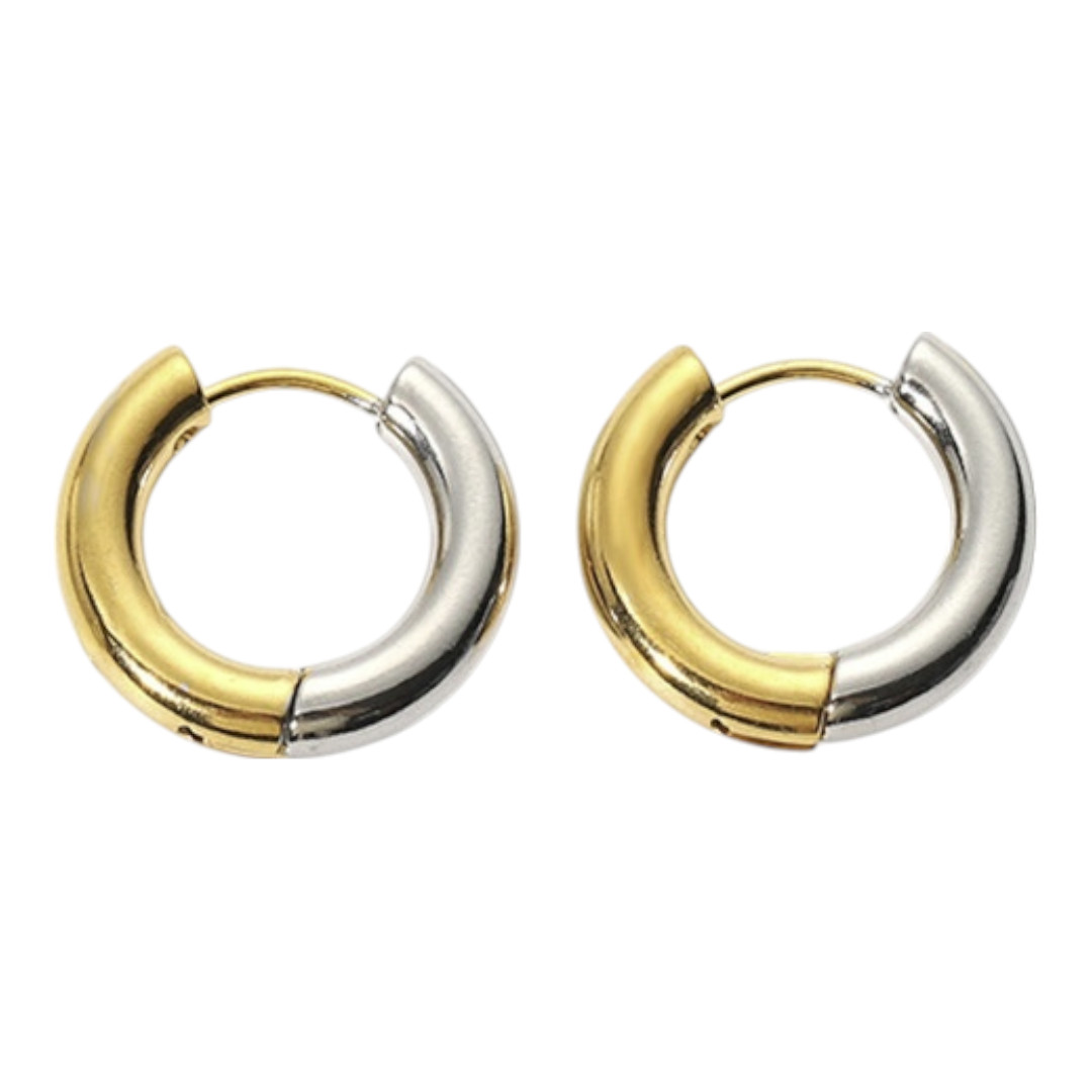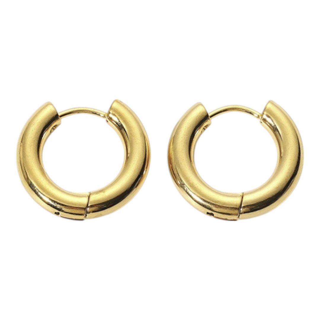 Arracada básica en acero inoxidable, resistente al agua y perfecta para el uso diario. Diseño clásico y versátil que se adapta a cualquier estilo, disponible en oro, plata y bicolor.