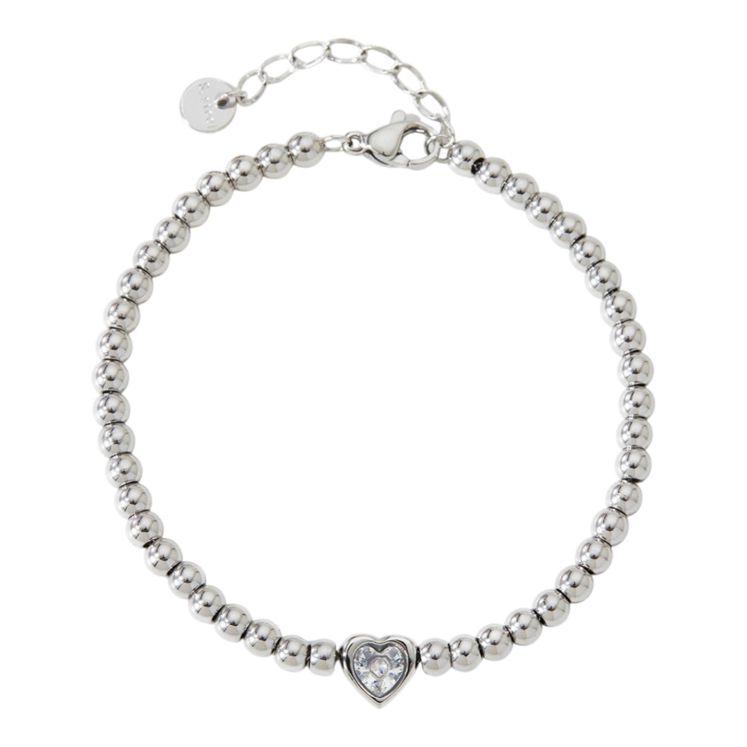 Este brazalete está compuesto por pequeñas bolitas metálicas que rodean la muñeca con suavidad, acompañado de un delicado dije en forma de corazón. Disponible en acabados dorado y plateado, su diseño minimalista lo convierte en una pieza versátil y femenina. Ideal para llevar solo como acento discreto o para combinar con otras pulseras y crear una composición más personalizada.