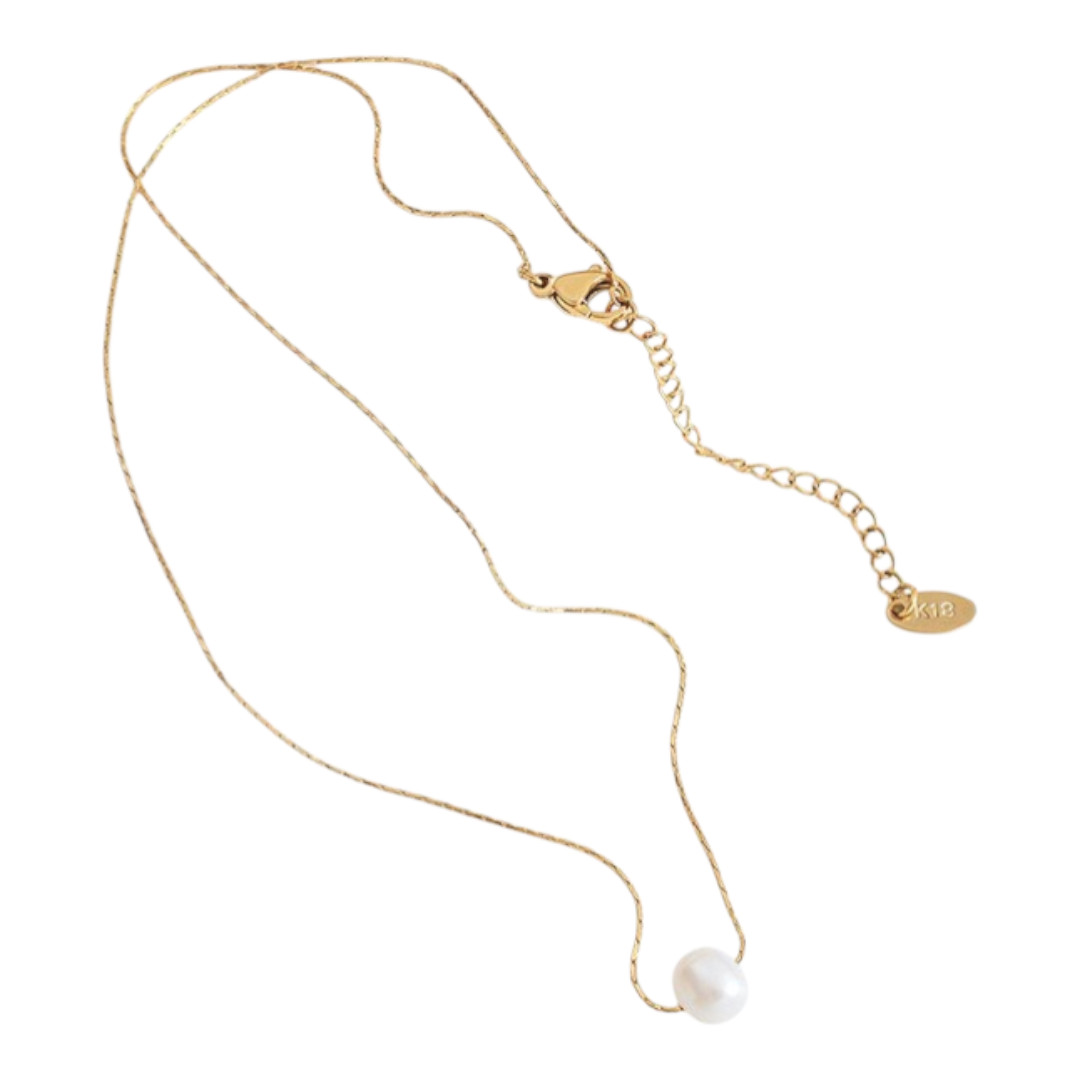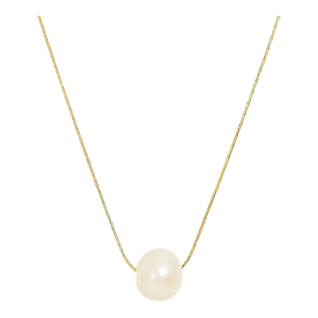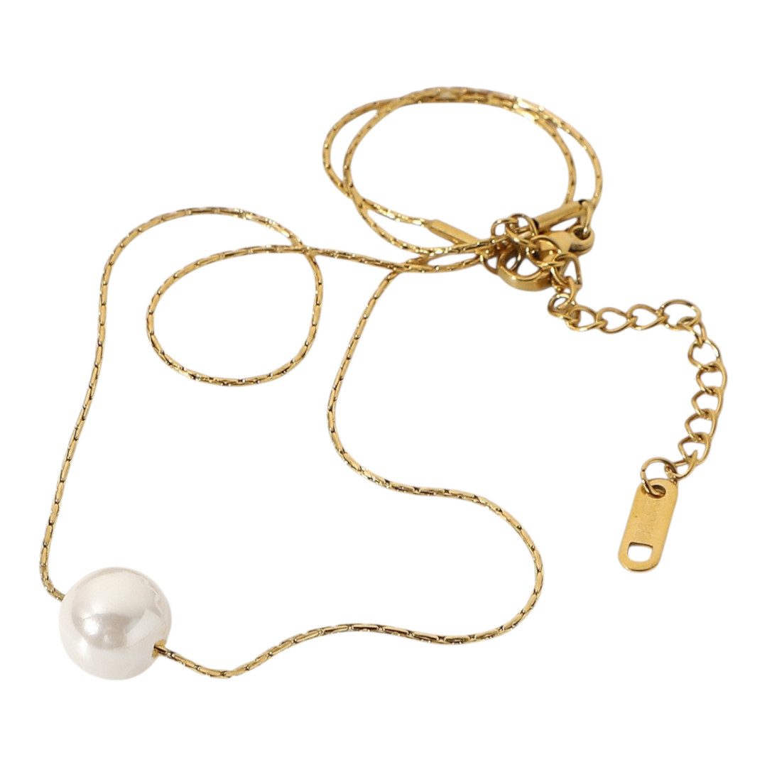 Esta pieza presenta una delicada cadena de oro de eslabones finos que sostiene una hermosa perla blanca como elemento central, creando un diseño que trasciende las tendencias y se convierte en un básico imprescindible.